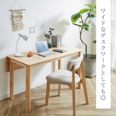 木製のナチュラルな天板は、作業空間にも馴染みやすそう。使わないときは折りたたんでしまえるため、「仕事専用デスクを置くスペースがない」という方にも向いていそうです。