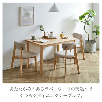 カラーはナチュラル系で、北欧・ナチュラル・シンプル系のインテリアと相性が良さそうです。主張しすぎないため、チェアや照明で雰囲気を変えやすいのもポイントですね。