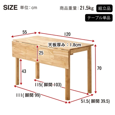 幅120cmで4人掛けも想像できるサイズ感