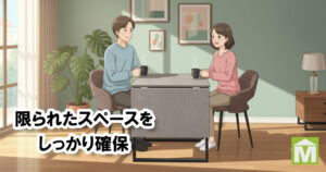 丸テーブルのやわらかい雰囲気は魅力的ですが、スペースや動線の問題で諦めがち。