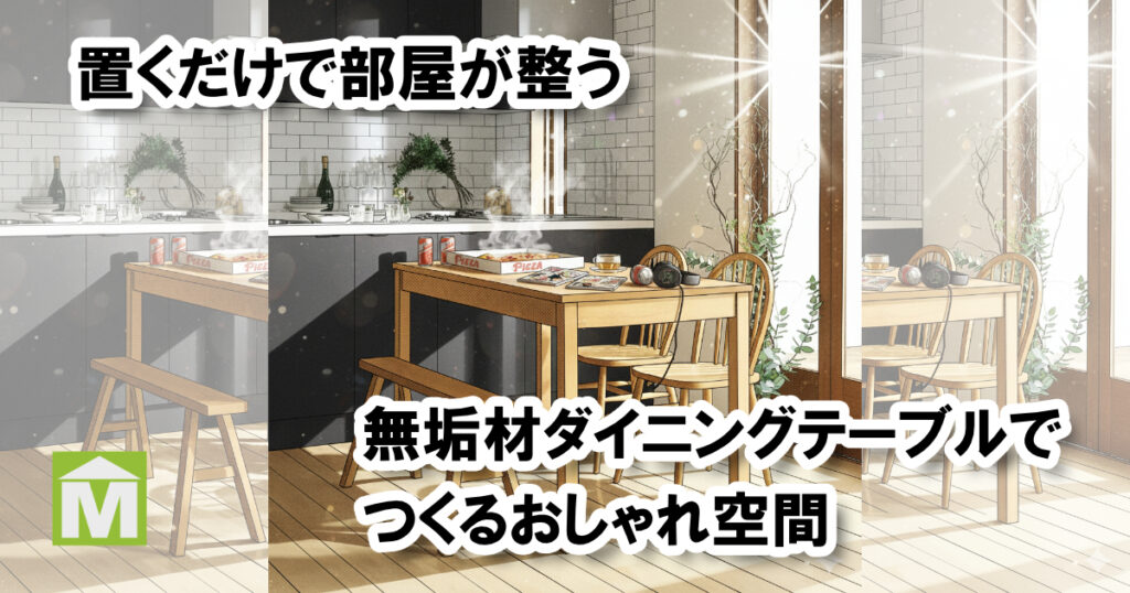 天然木の温もりが広がる、無垢材の四人掛けダイニングテーブル